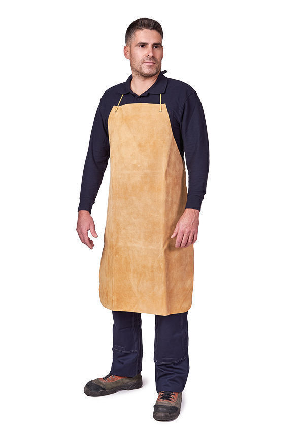 Tablier en croûte. Attache par boucle au col et à la taille. Cuir de sélection extra. Épaisseur minimum : 2-2,2 mm.