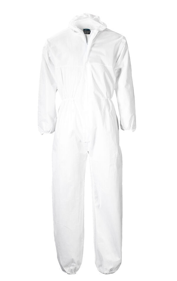 Combinaison à capuche, chevilles, poignets et taille élastiqués.