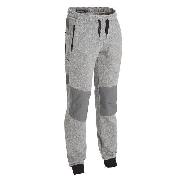 Pantalon jogging en molleton. Ceinture élastiquée avec cordon de serrage. Larges cordons de serrage avec embouts et œillets métalliques gravés. Renforts genoux et empiècement dos. 3 poches zippées. Zips plastiques injectés. Poche mètre/cutter renforcée. Finition bord-côtes. Badge Molinel en caoutchouc. Empiècements genoux et dos contrastés. EJ : 82 cm.
