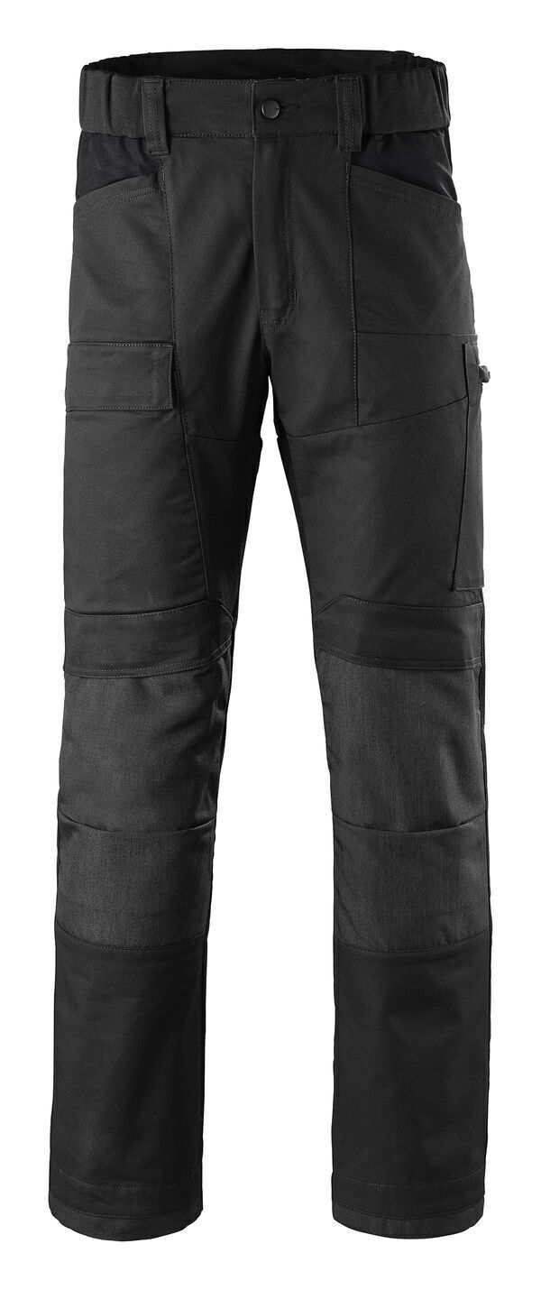 Pantalon bi-matière homme. Ceinture élastiquée aux côtés. Insert lombaire en bord-côte extensible. 2 poches italiennes. Fond de poche, arrière de la cuisse et insert d'aisance à l'entrejambe en Ripstop stretch Cordura®. Côté droit : poche cuisse fermée par rabat avec auto-agrippant. Poche mètre avec bas volant en Cordura®. Côté gauche : poche type cargo avec soufflet en Cordura® fermée par zip. Poches genouillères préformées, renforts bas de jambes et ourlet en Cordura®. Rehausse dos. | Mercerie tout plastique. Coupe ajustée. E.J. : 80 cm (+ 5 cm).