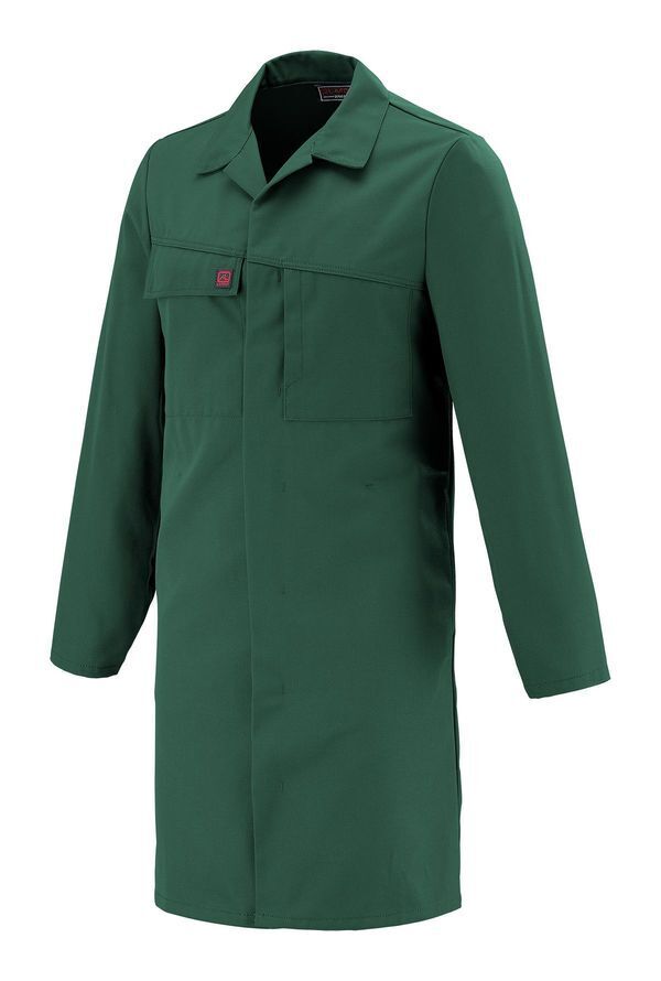 Blouse à col transformable. Devant fermé par pressions cachées. Collerette de marquage. Empiècements devant et dos obliques. Poches poitrine sous rabats fermées par Velcro® cachés, incrustée à droite, ouverture verticale à gauche. Poches basses dans coutures côtés. Fonds de poches maintenus par point d’arrêt. Manches montées. Bas de manches réglables par pression. Fente dos. Surpiqûres contrastées. Mercerie tout plastique.