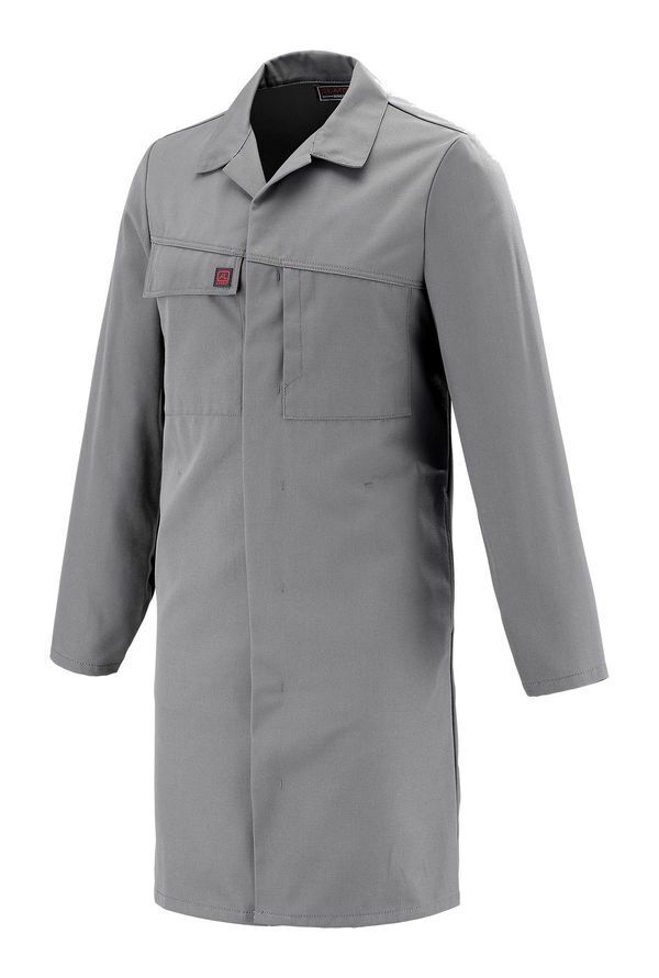 Blouse à col transformable. Devant fermé par pressions cachées. Collerette de marquage. Empiècements devant et dos obliques. Poches poitrine sous rabats fermées par Velcro® cachés, incrustée à droite, ouverture verticale à gauche. Poches basses dans coutures côtés. Fonds de poches maintenus par point d’arrêt. Manches montées. Bas de manches réglables par pression. Fente dos. Surpiqûres contrastées. Mercerie tout plastique.