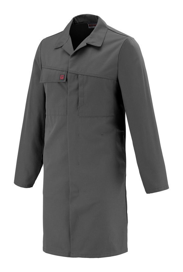 Blouse à col transformable. Devant fermé par pressions cachées. Collerette de marquage. Empiècements devant et dos obliques. Poches poitrine sous rabats fermées par Velcro® cachés, incrustée à droite, ouverture verticale à gauche. Poches basses dans coutures côtés. Fonds de poches maintenus par point d’arrêt. Manches montées. Bas de manches réglables par pression. Fente dos. Surpiqûres contrastées. Mercerie tout plastique.