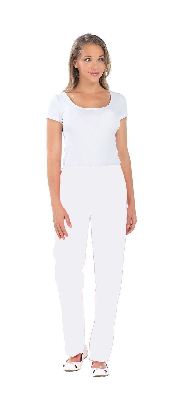 Pantalon femme. Taille semi-élastiquée effet ventre plat. 2 poches italiennes. E.J. : 82 cm.