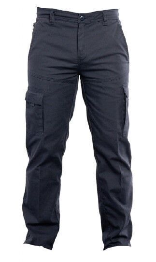 Pantalon stretch, ceinture droite avec passants. Fermeture centrale par bouton. Braguette zippée. Renfort à l'entrejambe. 2 poches italienne. 2 poches cuisses à rabat et soufflet contrastés, dont une poche de sécurité fermé par zip. Poche téléphone. Réhausse dos. 2 poches plaquées dos dont une à rabat. Finition par ourlets. Coupe ajustée, E.J: 82 cm (+5 cm).