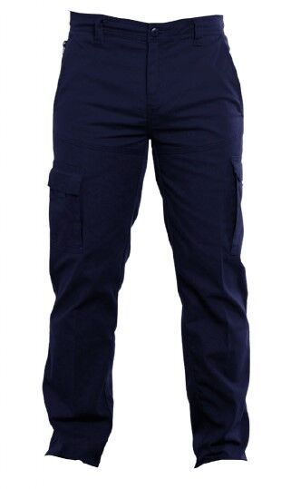 Pantalon stretch, ceinture droite avec passants. Fermeture centrale par bouton. Braguette zippée. Renfort à l'entrejambe. 2 poches italienne. 2 poches cuisses à rabat et soufflet contrastés, dont une poche de sécurité fermé par zip. Poche téléphone. Réhausse dos. 2 poches plaquées dos dont une à rabat. Finition par ourlets. Coupe ajustée, E.J: 82 cm (+5 cm).
