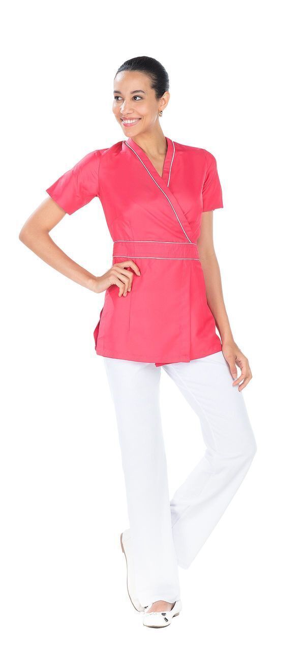 Tunique à fermeture croisée cache-cœur, ceinture et lien.
