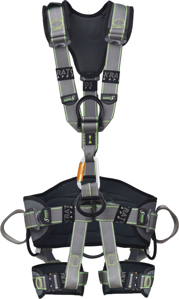 0501F37700005 Harnais de suspension 2 points : 1 dé dorsal, 1 dé sternal, 1 dé ventral pour l’accès sur corde, et 2 dés textiles latéraux pour le positionnement au travail. Les sangles des cuisses sont équipées de boucleries automatiques. 4 poignées porte-matériel pour l'accrochage de mousquetons et accessoires, et 2 anneaux porte-outils.