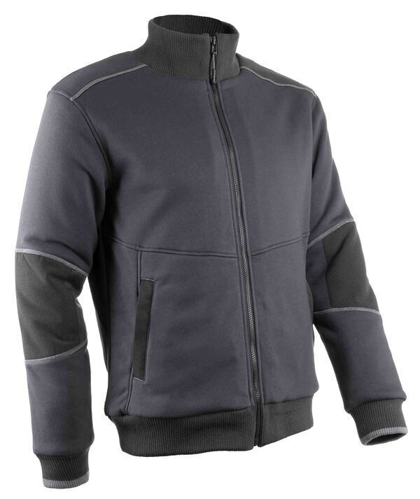 Veste sweat-shirt. Col montant. Fermeture centrale zippée. 2 poches basses zippées. Coudes renforcés en ripstop. Col, poignets et tour de taille en bord-côte. Doublure sherpa sur le corps. Doublure matelassée en polyester dans les manches. | Trappe de marquage.