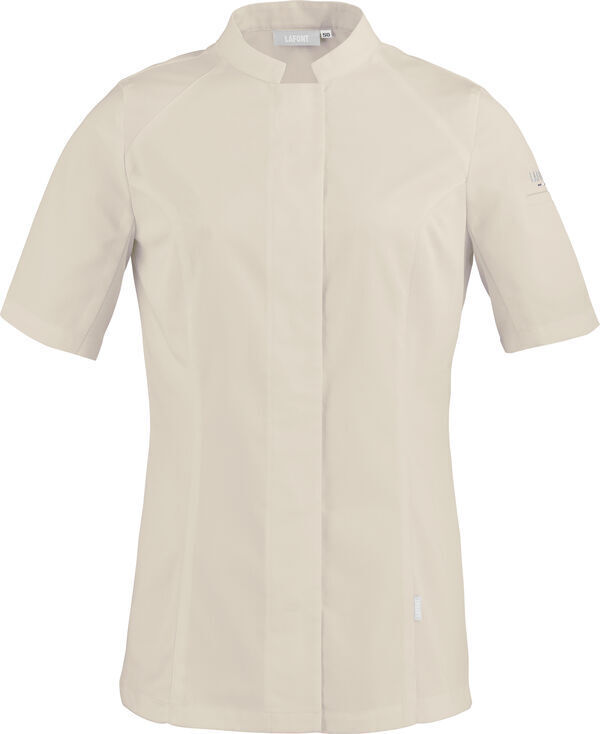 03LAFPEPPERMC Veste femme bi-matières à col officier plongeant. Fermeture milieu devant par boutons-pression cachés. Manches courtes. Poche passepoilée sur manche gauche. Fentes côtés. Empiècements en maille piquée aux épaules et aux côtés.